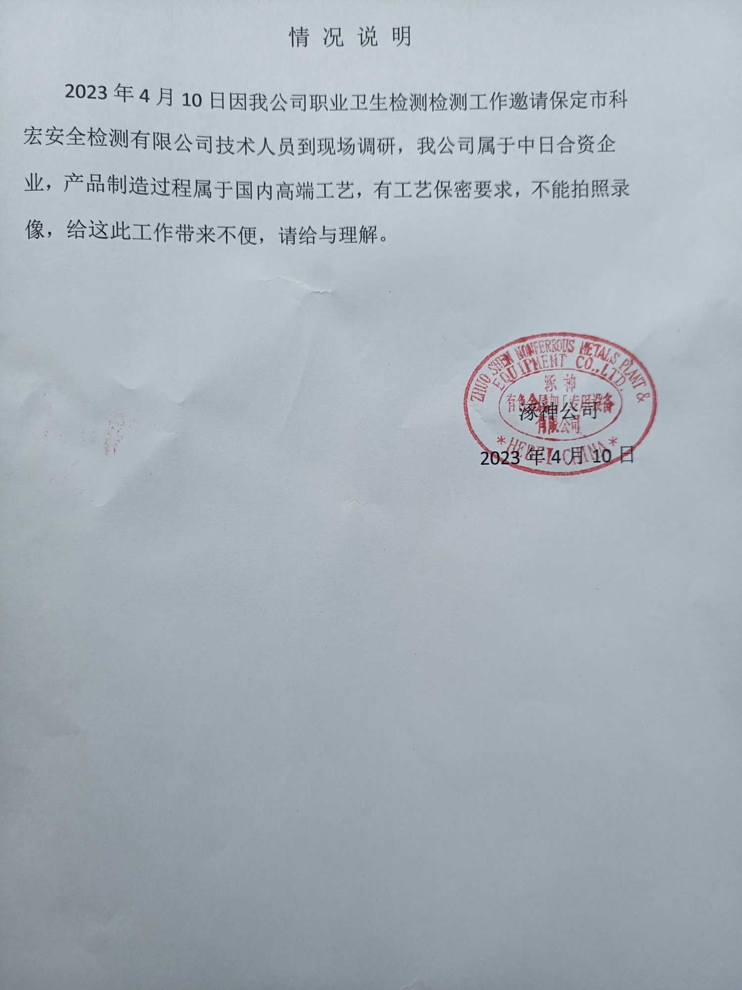 | 现场调查人员 | 毛国华、王新树 | 用人单位陪同人 | 刘建龙 | 时间 | 2023-04-10 |